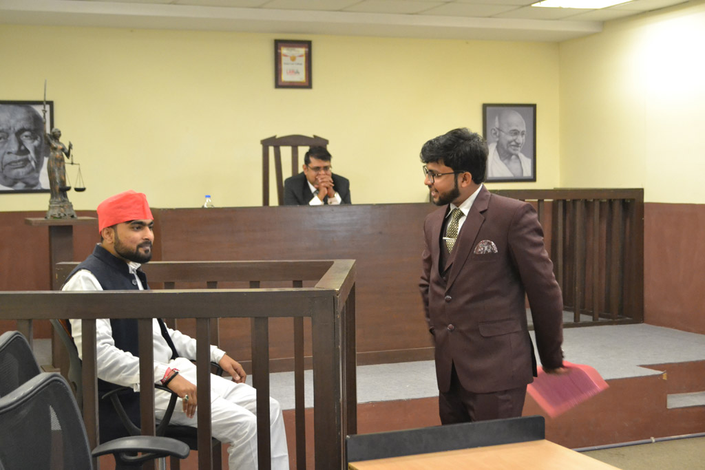 To participate, each team needed to have a minimum of 3 and a maximum of 7 participants. Being an attempt to re-create the ambience of a court room scene, the participants were in the capacity of 1 as an interviewer, 1 as an interviewee and the rest as audience. The interviewer asked questions to interviewee regarding the prevailing current legal and social issues, and the audience of the team were allowed to share their views on the topic. The teams were to be judged on the basis of content, knowledge, command over the issue, deliberation on the given topic.