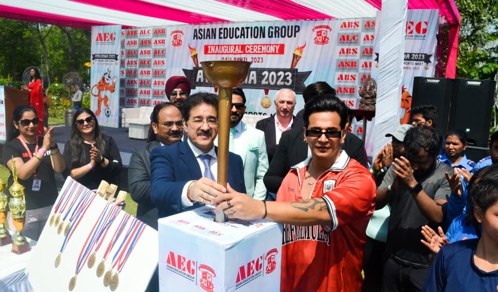 The inaugural function on 4th April 2023 began with the auspicious torch-lighting ceremony, ignited by the chief guest, Mr. prince Narula; Dr. Sandeep Marwah, President-AEG; and Directors AEG, namely Dr. Lalitya Vir Srivastava, Mr. Saurabh Sharma and Mr. Gurdeep Singh Raina. After this, the distinguished dignitaries on the dais inspired the participating students with some zestful speeches.