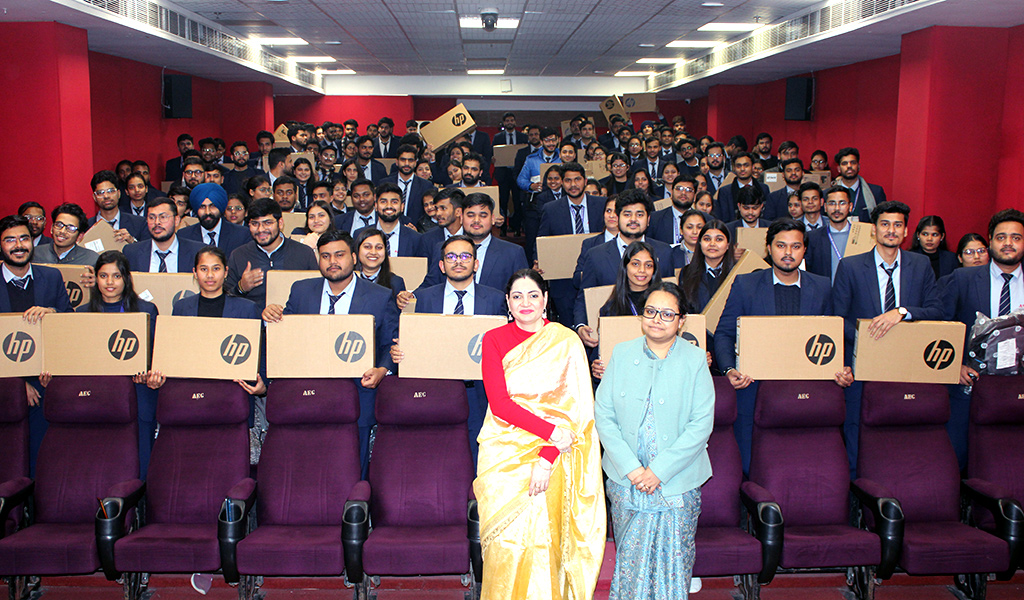 The most exciting announcement of the day was made at the end of the ceremony, and it was the delivery of computers to the new cohort of PGDM 2023 students. As each student was presented with a laptop, the auditorium was filled to the brim with excitement and joy. The students’ faces were adorned with grins, and their eyes could be seen shining with pleasure.