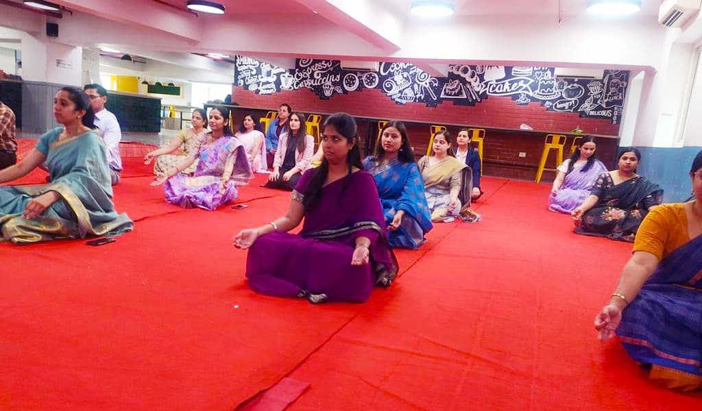 The event began with a brief introduction on Yoga Day by Mr. Sachin, Sports Faculty & the trainer for the day. First everyone was indulged into the warm up exercises and later practiced & performed sitting and standing asanas, importance of these were explained simultaneously. Mr. Sachin, concluded the session by explaining the importance of Yoga in life & how to maintain the harmony between body and mind. Faculties also discussed the importance of yoga and very enthusiastically exhibited yoga asanas and promised to introduce this activity in their daily lives.