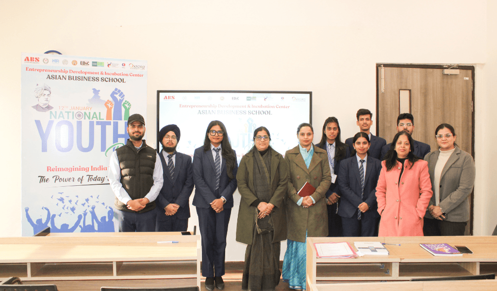 Asian Business School’s Entrepreneurship Development & Incubation Centre (EDIC) celebrated National Youth Day on 12th January 2026 to commemorate the birth anniversary of Swami Vivekananda, with the objective of inspiring young minds to reflect on their role in nation-building. On this occasion, the institute organized an Extempore Competition on the theme “Reimagining India 2047: The Power of Today’s Youth.” The event aimed to encourage students to express their ideas spontaneously while enhancing their communication, critical thinking, and leadership skills.