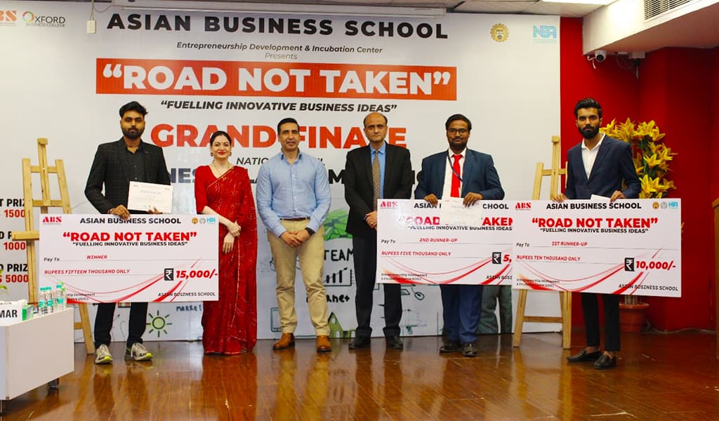 The event was judged by Mr. Shekhar Kumar, a prominent figure in the entrepreneurial ecosystem, who provided insightful feedback to all the finalists, encouraging them to refine and enhance their business models. Sankalp Jain & Pradeep Yadav from Amity University, Noida, clinched the first prize with their innovative business plan that stood out for its originality, scalability, and potential impact. Chirag Rastogi from Jaipuria Institute of Management secured the second position. His business idea was commended for its practical applicability and strategic approach. Kamal Krishna, from Sharda University whose creative and market-relevant proposal earned him third place in the competition. Mr. Shekhar Kumar praised the participants for their creativity and enthusiasm. He emphasized the importance of innovation and adaptability in today’s dynamic business environment. He also provided constructive feedback to the finalists, guiding them on how to refine their ideas and make them market-ready. The competition saw a diverse range of ideas, showcasing the participants’ creativity and entrepreneurial potential. The finalists captivated the audience and judges with compelling presentations and well-structured business models. The event served as a valuable learning platform for all attendees, highlighting emerging trends and strategies in entrepreneurshipThe ‘The Road Not Taken’ competition was a resounding success, reaffirming Asian Business School’s commitment to fostering innovation and entrepreneurship. The EDIC Cell expressed its gratitude to Mr. Shekhar Kumar, the participants, and the organizing team for their efforts in making the event memorable.