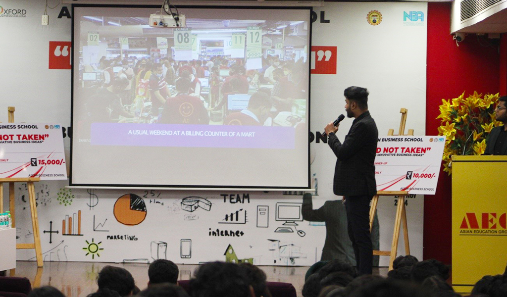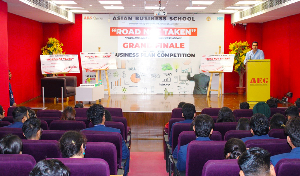 The EDIC Cell of Asian Business School hosted the national-level business plan competition titled ‘The Road Not Taken’ on 26th November 2024. This event aimed to inspire and support entrepreneurial innovation among students, providing them with an opportunity to present their ground-breaking business ideas to a panel of esteemed judges. A total of 56 teams from renowned institutions across India participated in the competition. After a rigorous screening process in the preliminary rounds, the top 6 teams advanced to the grand finale.