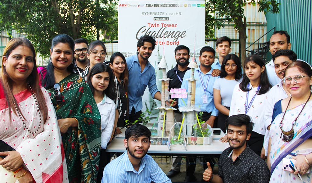 On 9th September 2025, the Synergise TogetHR Club at Asian Business School (ABS) organized an innovative and engaging activity titled "Twin Tower Challenge – Build to Bond ". The event was aimed at fostering key skills such as teamwork, leadership qualities, creativity, problem-solving, communication, and time management. The activity witnessed enthusiastic participation from 225 students of PGDM 1st year, who collaborated in teams to create twin towers using limited resources like newspapers. This activity was designed to foster essential skills such as teamwork, creativity, critical thinking, and task delegation while exploring theme-based design concepts.